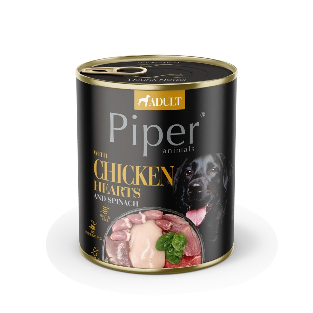 PIPER S KUŘECÍMI SRDÍČKY A HNĚDOU RÝŽÍ, KONZERVA PRO PSY 800 g